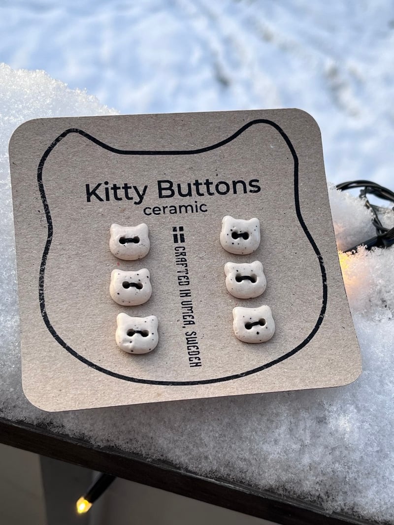 Ceramic Buttons Kitty-Shaped | 6 pcs | Beige Speckled
